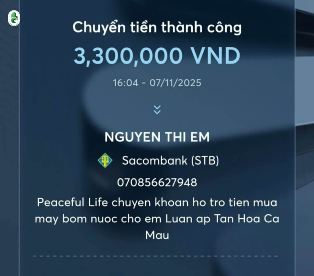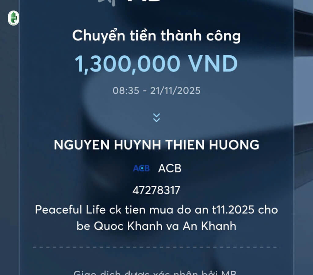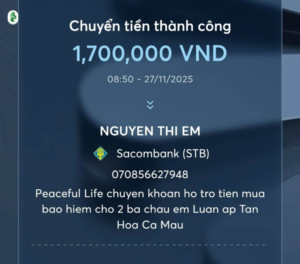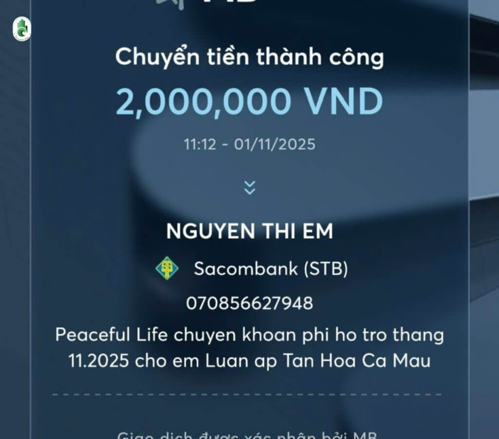 Peaceful Life đã hoàn tất chuyển khoản và thực hiện các hoạt động hỗ trợ thường xuyên dành cho các hoàn cảnh mà cộng đồng đang đồng hành: